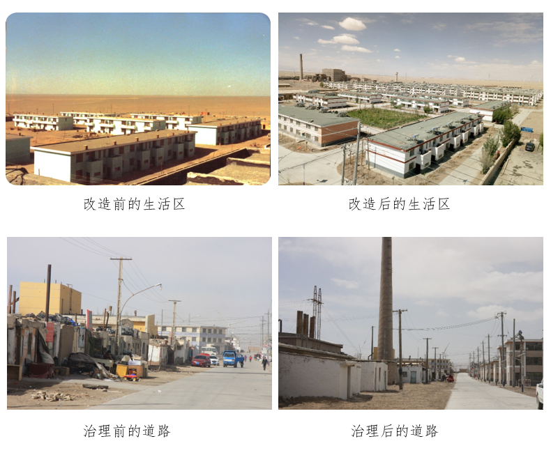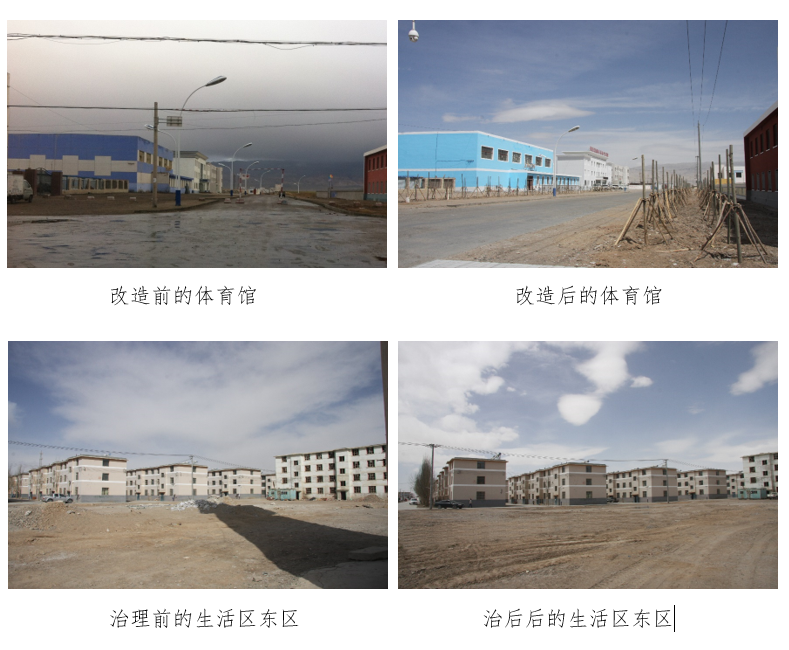 近年来,在地方政府的大力支持下,对生活区所有房屋进行了保温改造;镇政府办公楼、学校操场、幼儿园、公安分局等也整修一新;全面实施了生活区道路的硬化、照明、亮化和绿化工程(种植各类树木17,000棵)。