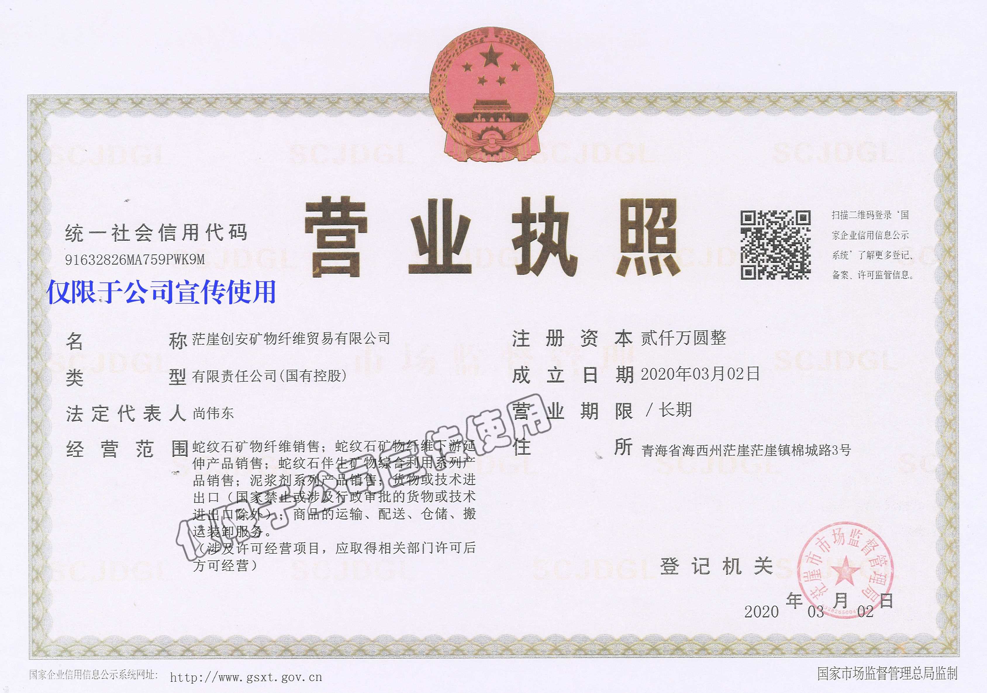 控股企业——茫崖创安矿物纤维贸易有限公司
